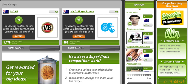 Supervirals is a website that offers you a way to exercise your creative mind by creating promotional videos,audio,pictures etc for brands and get rewarded by the brands if you win the competition(by being the most viral/popular).
